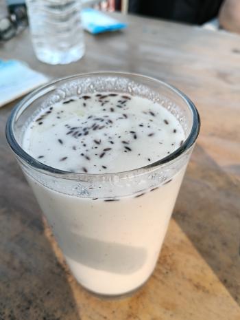 バターミルク入りのソルティラッシーは本当に効きました。ラッシーだけではそこまで効果はなかったので、バターミルクが良かったのだと思います。喉にいい膜を作ってくれた感じでした。最初から取り入れていくとかなりいいと思いました。日本から持っていった、フリーズドライの味噌汁も良かったですが、とろっとした葛入りの生姜湯なども喉に良かったので、日本から持っていって、お湯に溶いてちょこちょこ飲むのがお勧めです。でもバターミルク最高。お店の人に喉に良いものを聞いて注文したらいいかも。アーユルベーダに基づく食文化が根付いているから、そういうの普通に知っている人がたくさんいる。