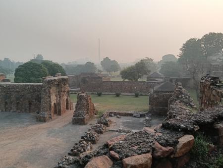 初日の夜、デリーのコノートプレイスに到着すると、なんとなく少し息苦しい感じだったけど、大気汚染の思い込みでそうなっているのかもしれないと思った。しかし翌朝明るくなって外に出ると、目視ではっきりわかるほど、空気は濁っていて、常に霧がかっているかのようでした。