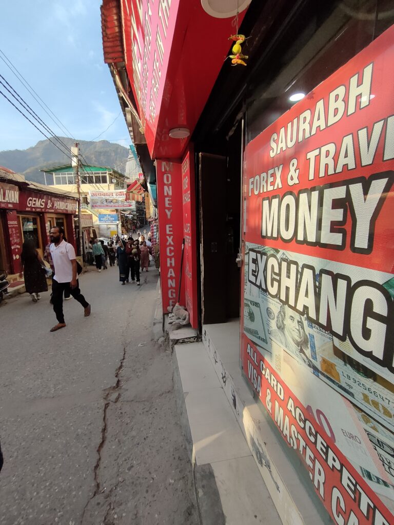 リシケシは田舎町なので、ATMはあんまりありません。地図で調べて、歩いて向かうのも結構な距離がありましたし、地図上にはあるのに、ないということもありました。どこでもいいわけじゃなく、外国人のカードがはじかれずらいのが、SBIかHDFCのようなので、その2つのATMを地図で探して、歩いて行って、という感じ。